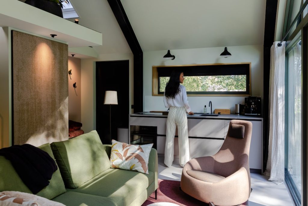 In het prachtige buitengebied van Brummen (naast onze studio) ligt onze luxe tweepersoons cabin. Onze trots. Onze showcase. Hier komen de stijl van Riender Interieurstudio, natuur en rust samen. Hier kan je zelf ervaren wat een Riender interieur met je doet.